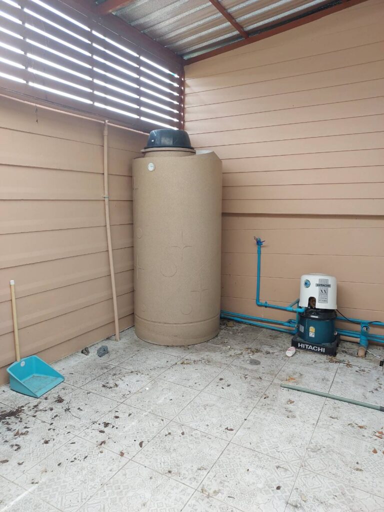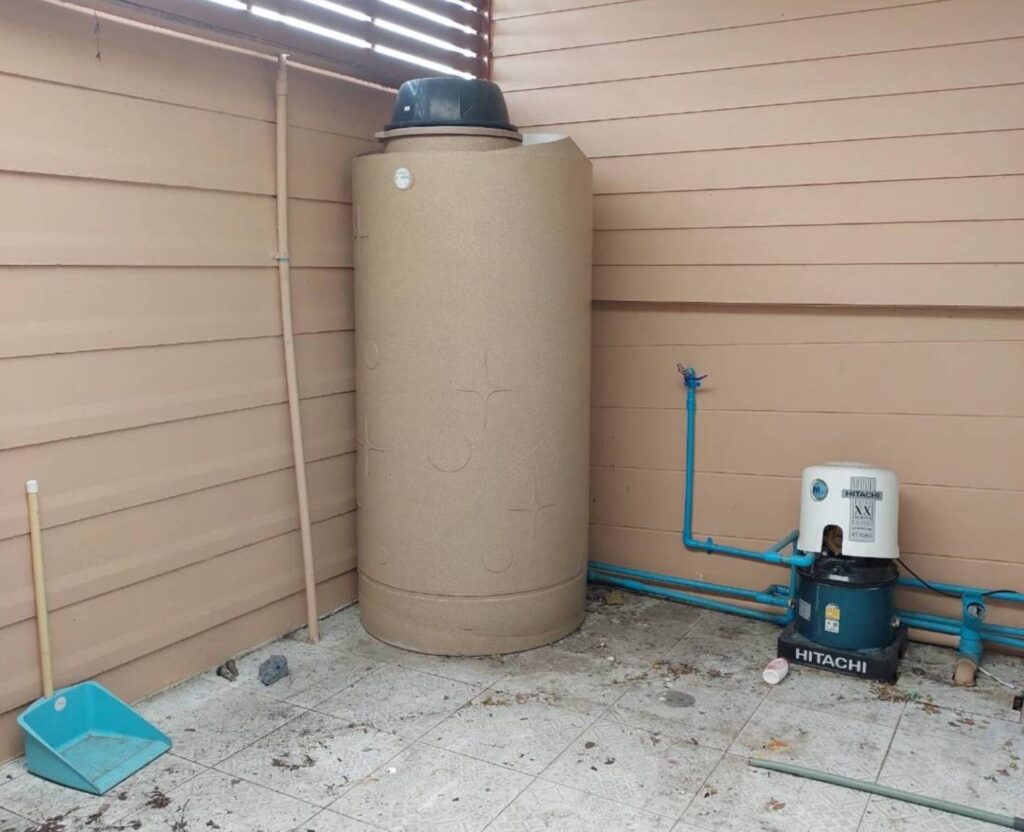 ห้องครัว 1 ห้อง มีต่อเติมครัว ปั้มน้ำ-แท้งค์น้ำ ต่อเติมหลังคาโรงรถ หลังคาห้อง