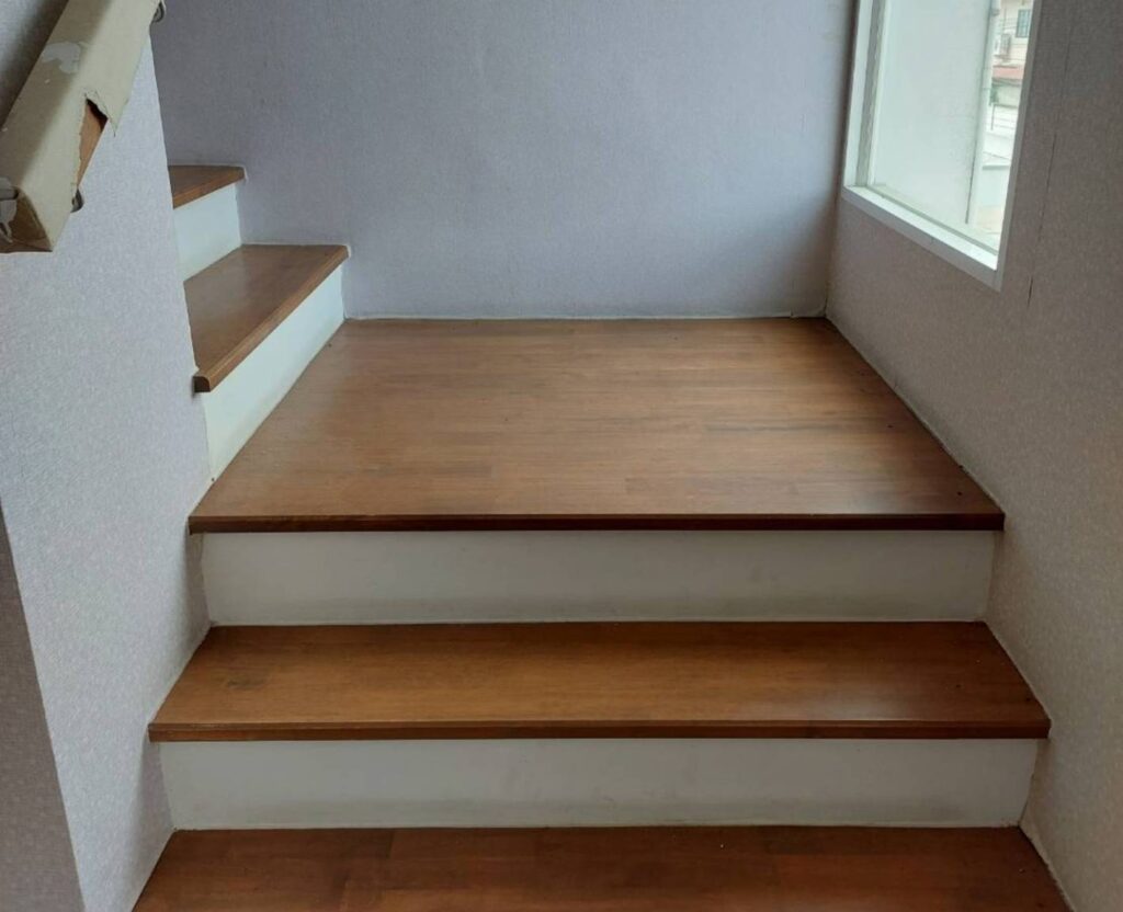 วัสดุปูพื้นชั้นล่างปูด้วยกระเบื้อง ชั้นบนปูด้วย ลามิเนต
