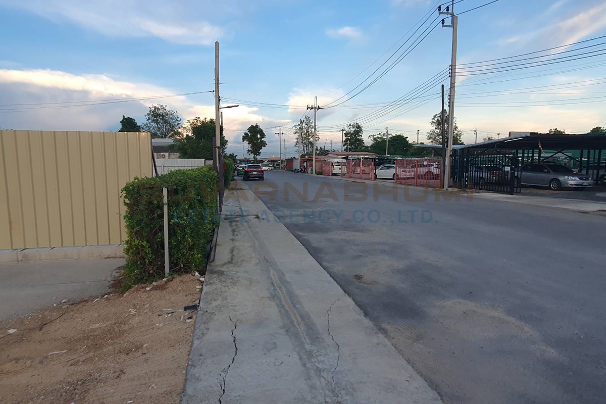 ถนนหน้าที่ดินกว้าง 6 เมตร ทีดินพื้นที่ เหมาะสร้างโกดังสินค้า สำนักงาน