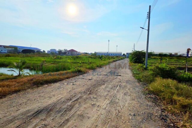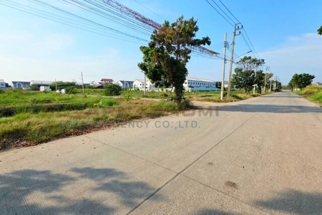เนื้อที่ 2 ไร่ หน้ากว้าง 49 เมตร ลึก 65 เมตร ที่ดินยังไม่ถม ที่ดินติดถนนทั้ง 2 ด้าน ด้านหน้ากว้าง