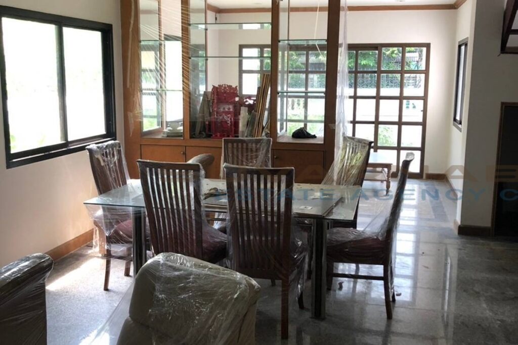 ห้องเก็บของใต้บันได,ครัวไทย มีเคาเตอร์ครัว, โต๊ะทานข้าว, ชุดรับแขก, เหล็กดัด,มุ้งลวด