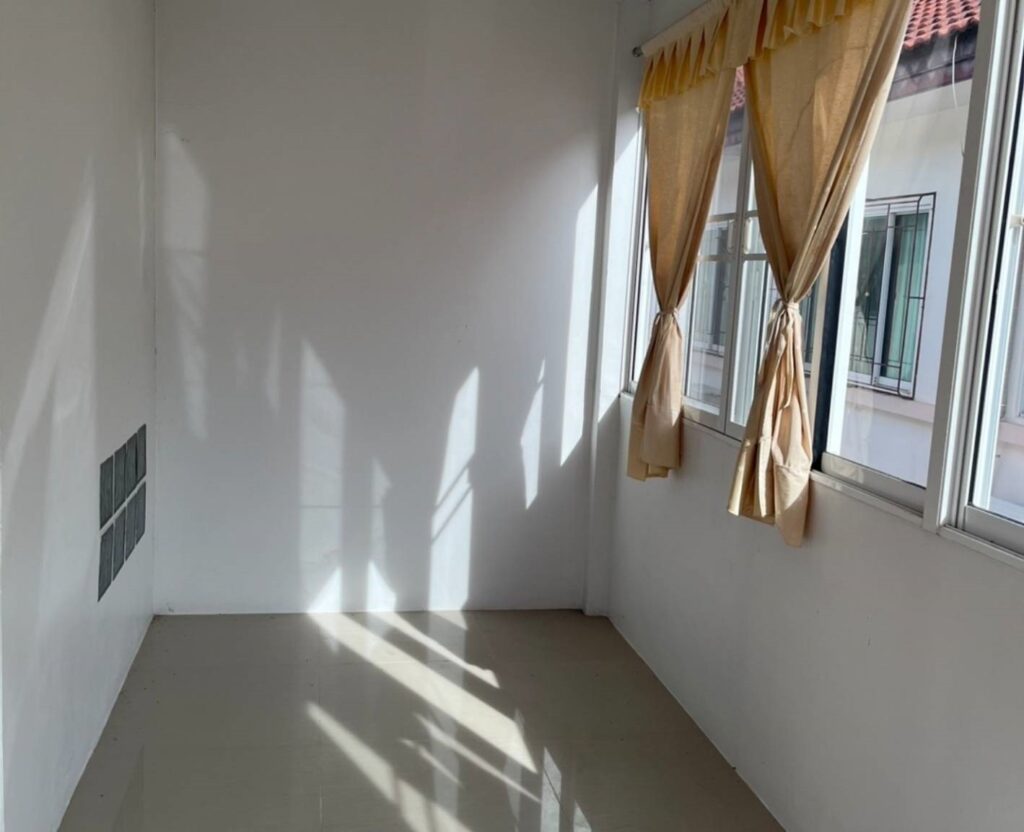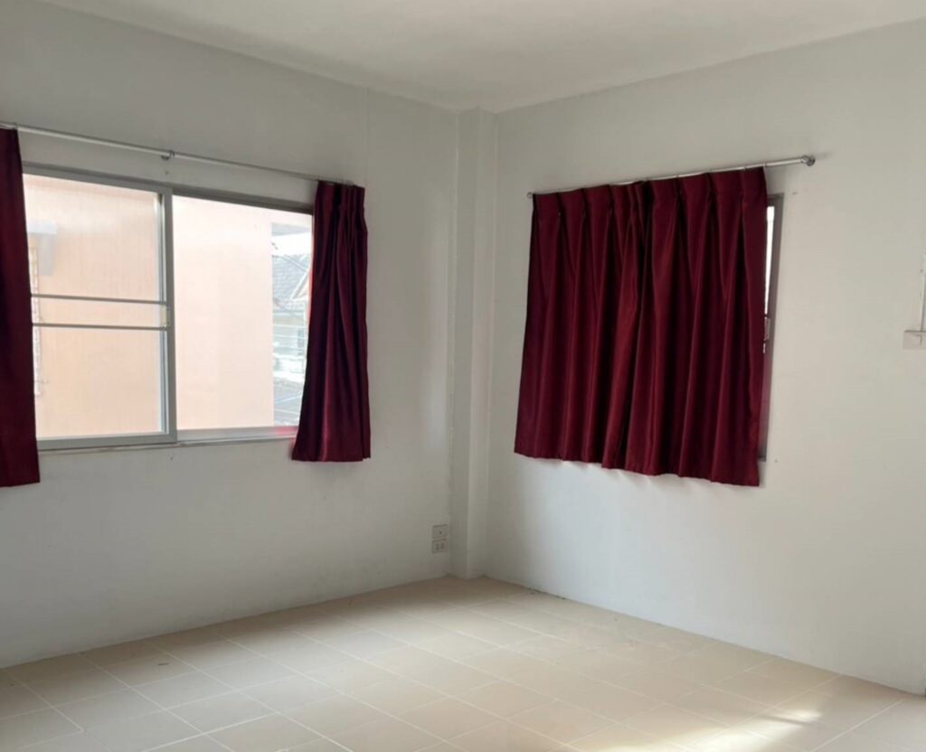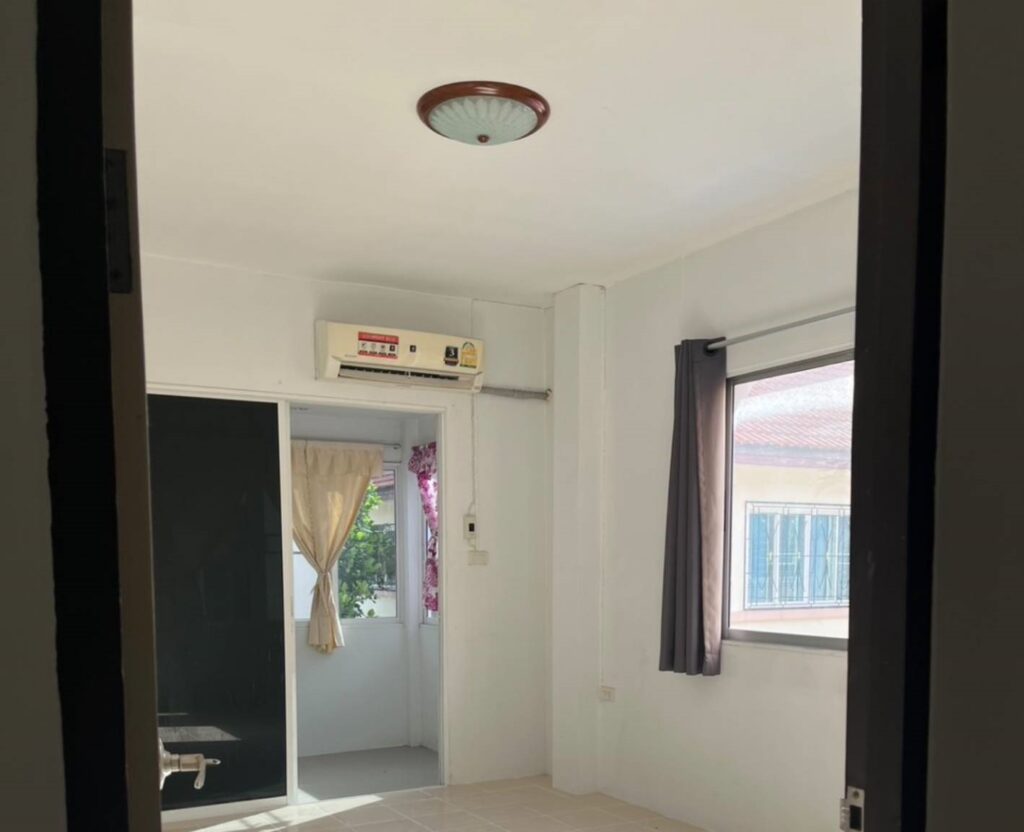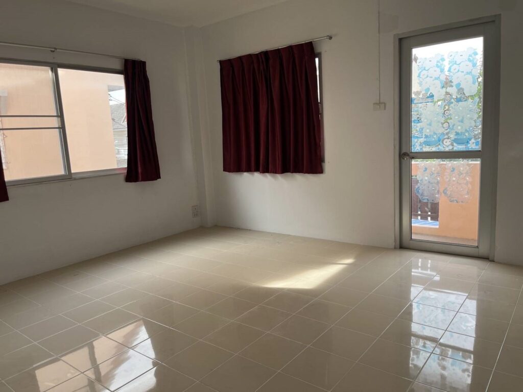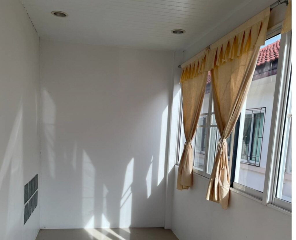 ที่จอดรถ 1 คัน มีแท้งค์น้ำ ปั้มน้ำ ต่อเติมครัว พร้อมเคาน์เตอร์ อ่างอาบน้ำ ผ้าม่าน มีระเบียงชั้นบน
