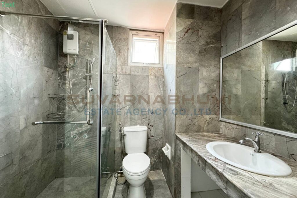 ที่จอดรถ 1 คัน แอร์ 5 เครื่อง วัสดุปูพื้นชั้นล่าง ปูหินอ่อน วัสดุปูพื้นชั้นบน ปาร์เก้ไม้ มีห้องน้ำในตัวทุกห้อง, เครื่องทำน้ำอุ่น, เครื่องซักผ้า,