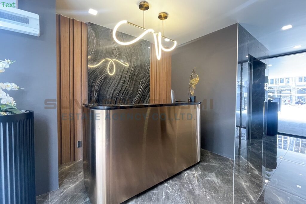 – โถงรับแขกด้านหน้ากระจกสูง 2 ชั้น สร้างความโปร่ง โล่ง โอ่อ่า