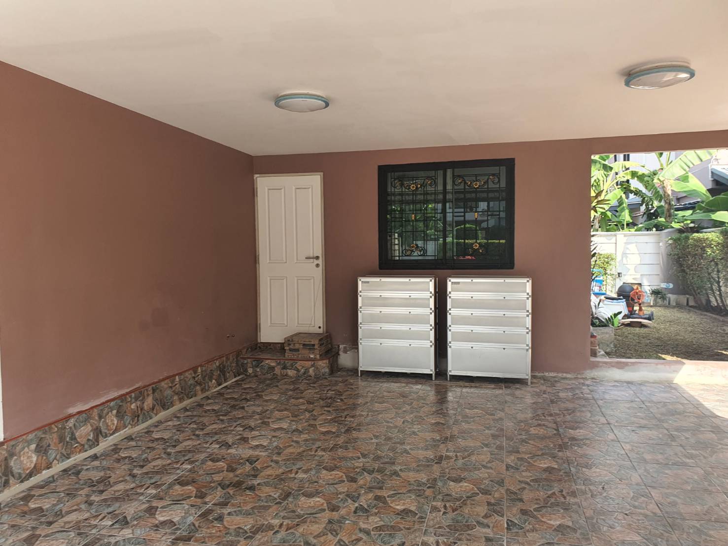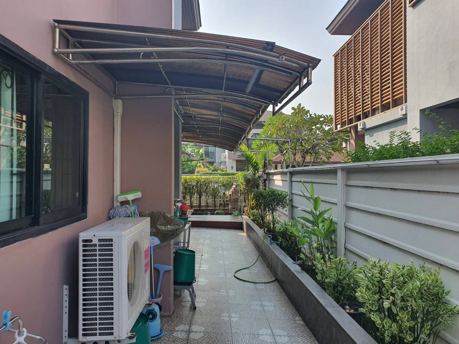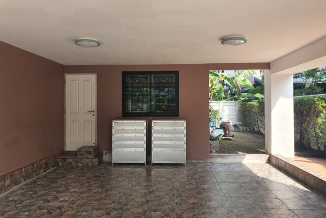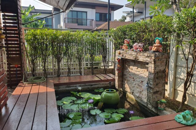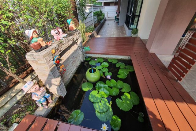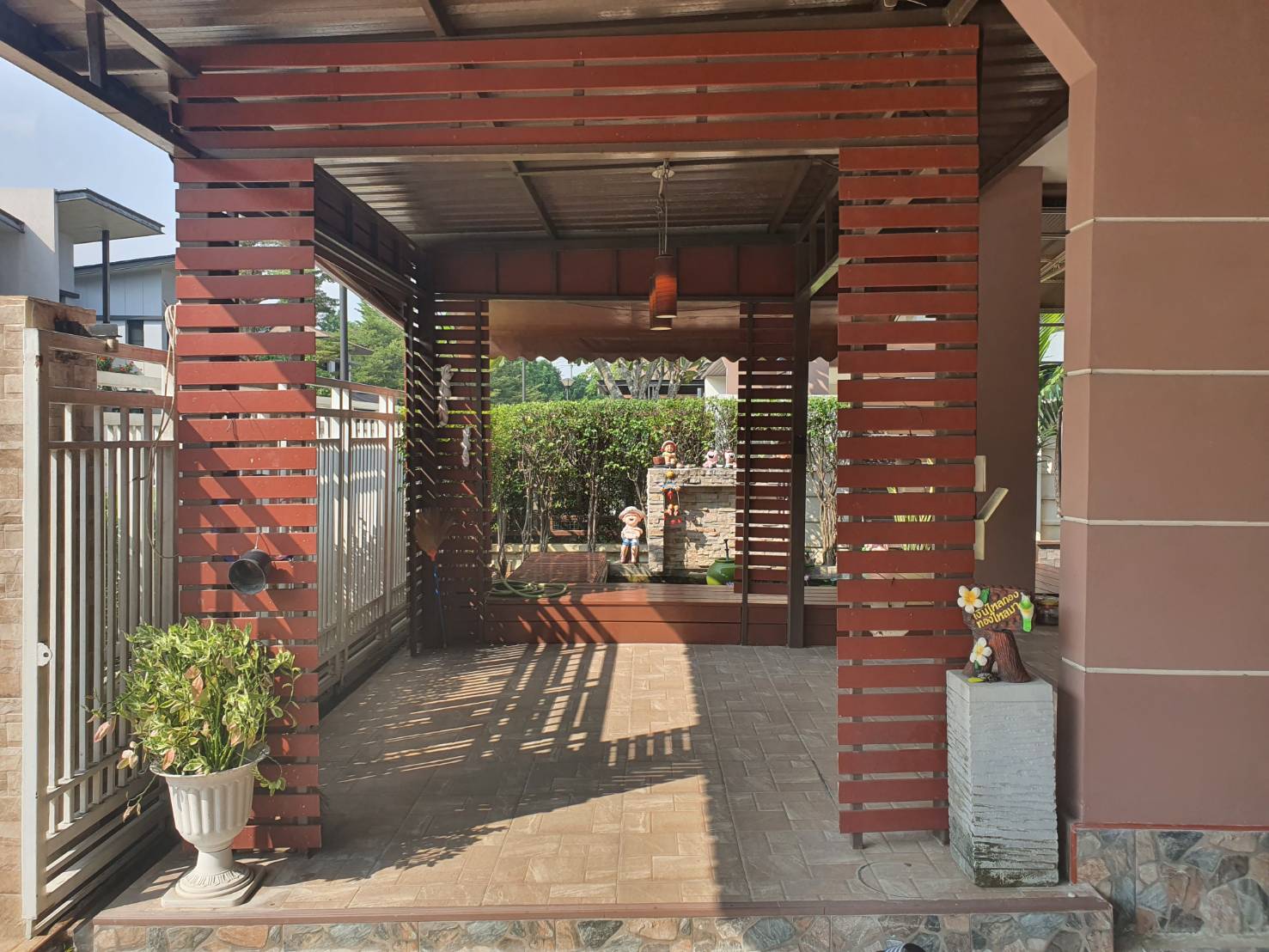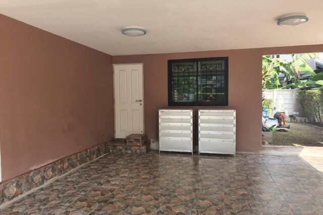 บ้านร่มรื่น น่าอยู่ มี จัดสวนสวย รอบบ้าน มีตู้เก็บอุปกรณ์ช่าง ตู้วางรองเท้า 2 ตู้