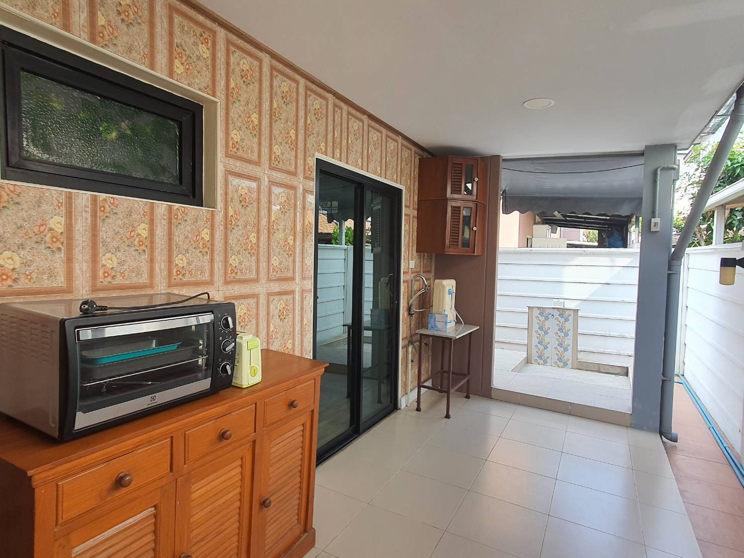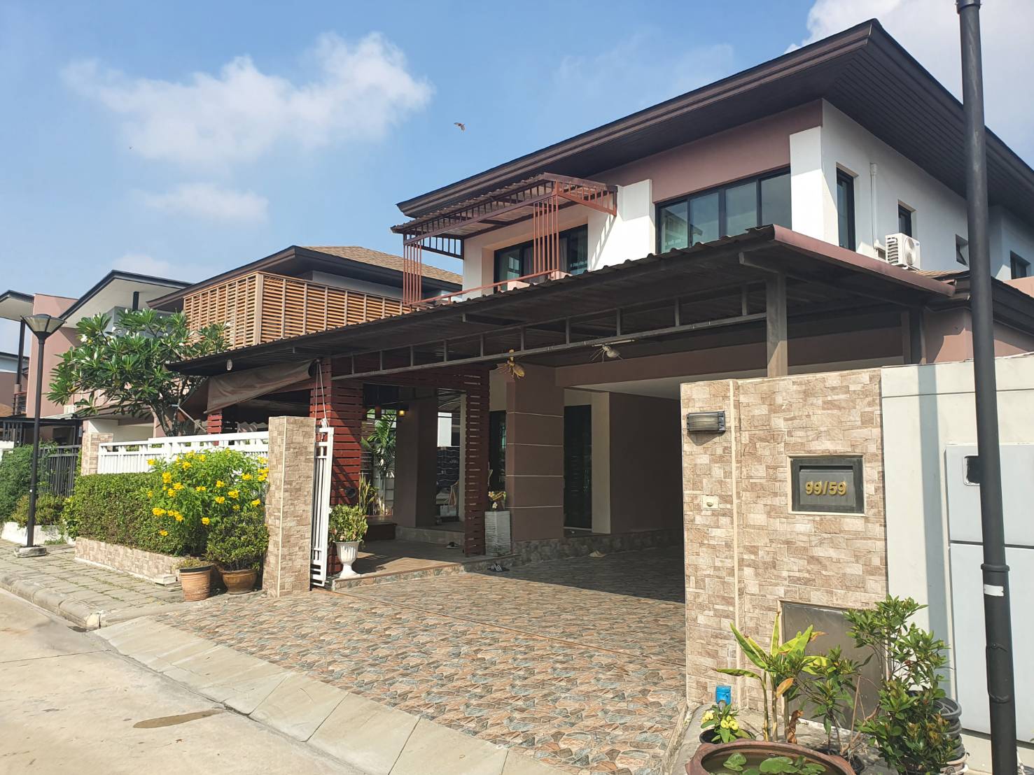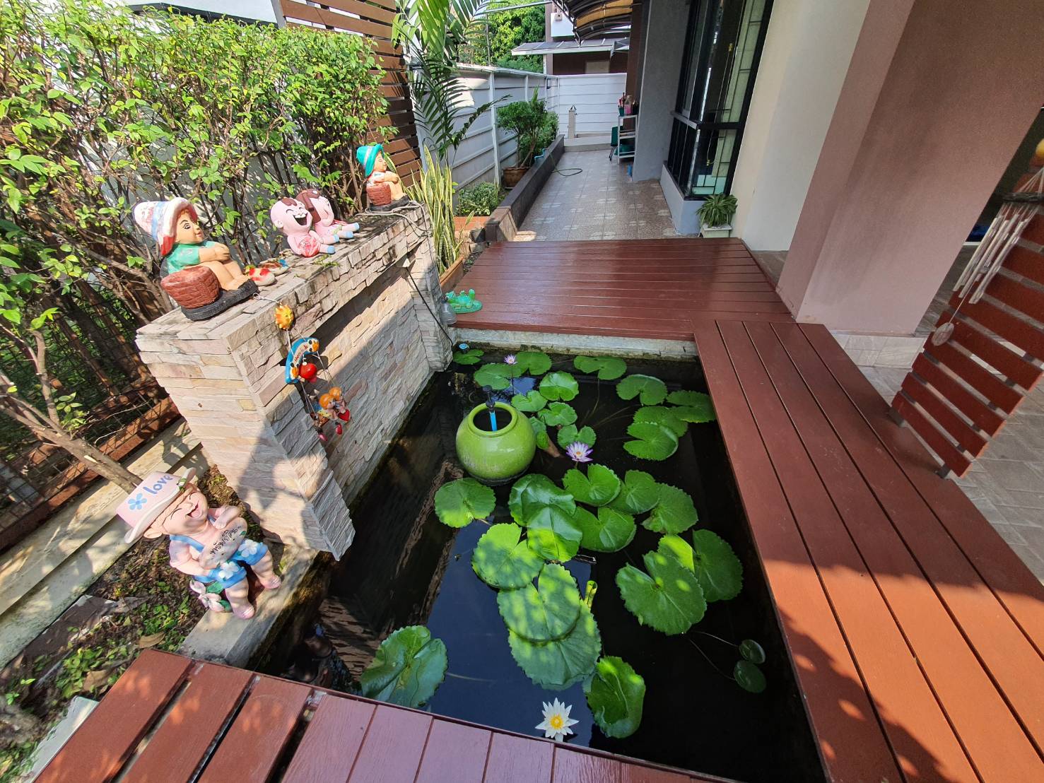 บ้านร่มรื่น น่าอยู่ มี จัดสวนสวย รอบบ้าน มีตู้เก็บอุปกรณ์ช่าง ตู้วางรองเท้า 2 ตู้