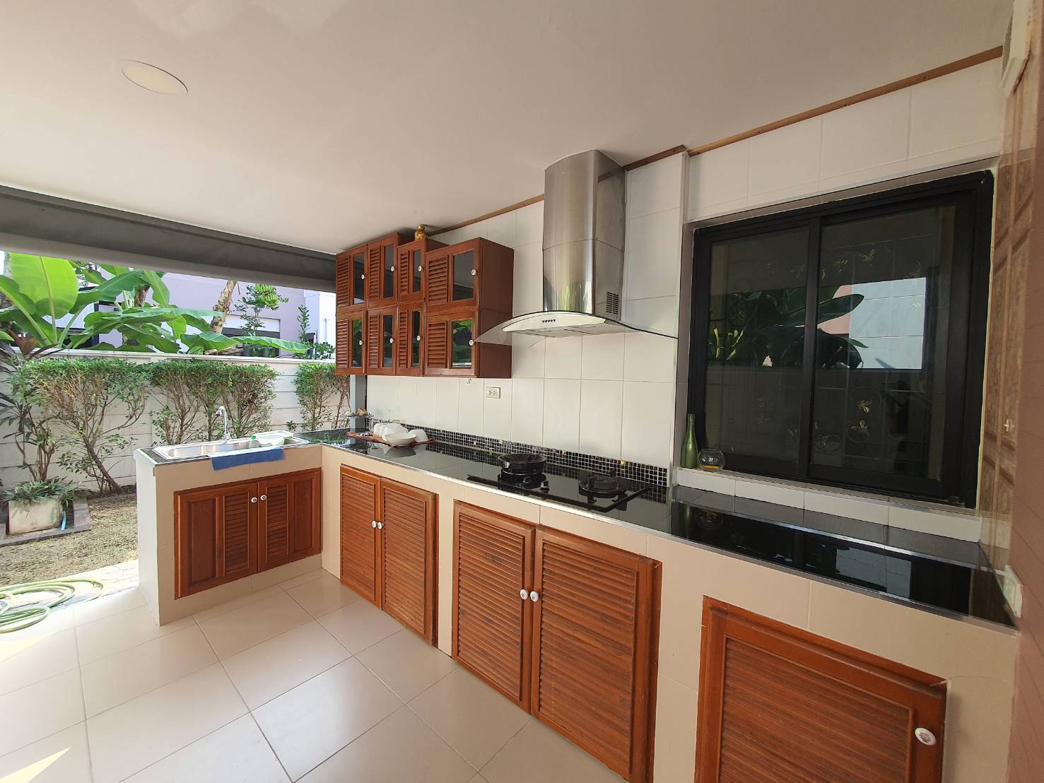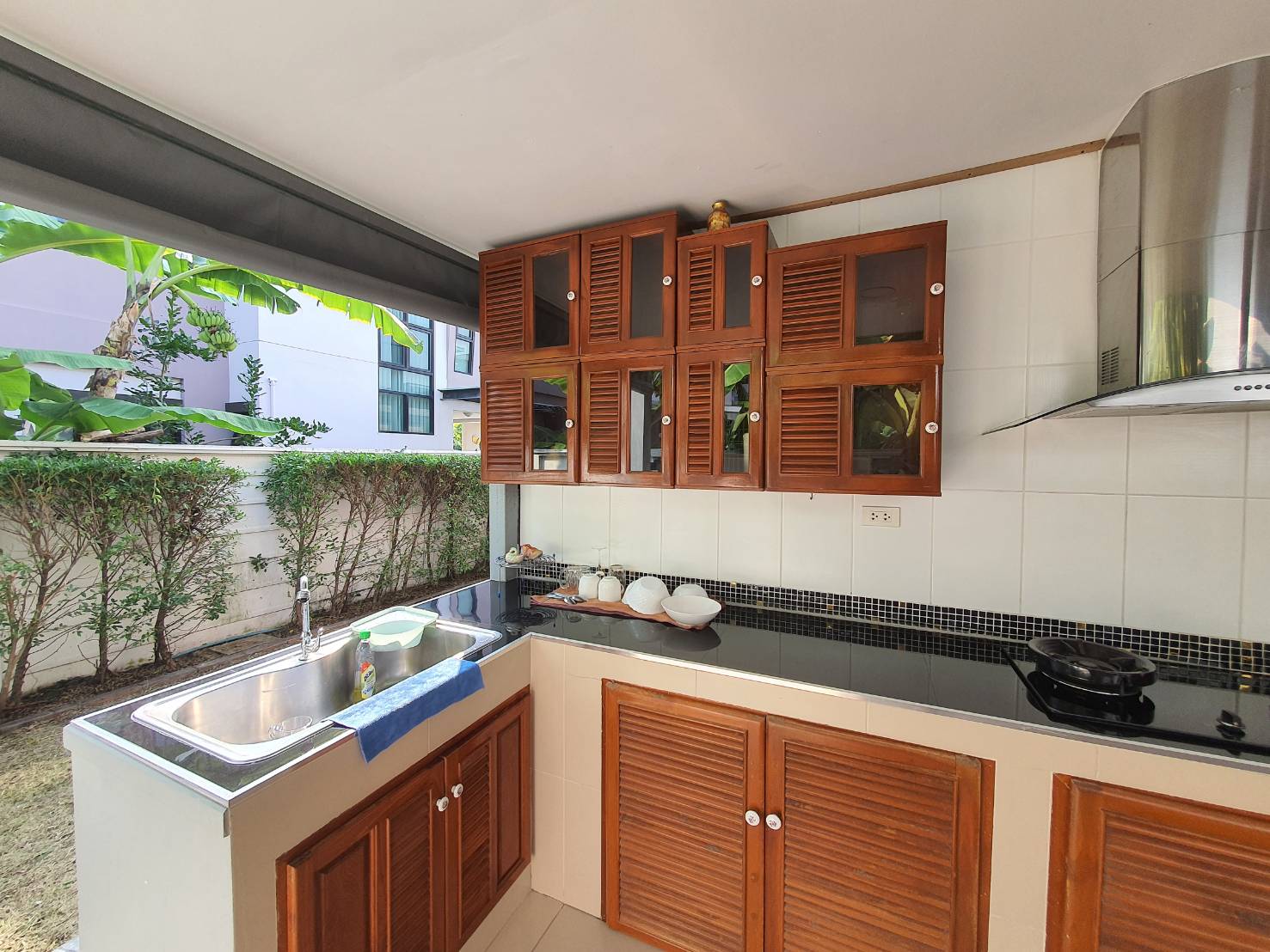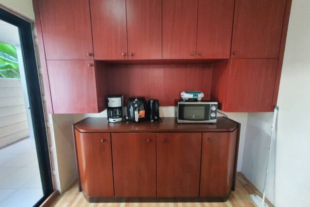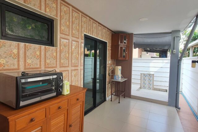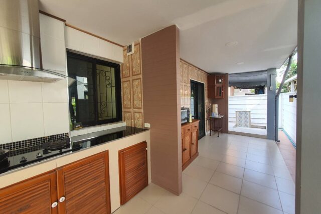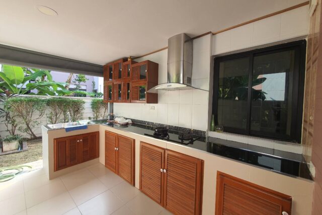 1 ห้องครัว มีครัวไทยนอกบ้าน และครัวฝรั่ง พร้อมห้องทำงาน 1 ห้อง/หรือทำเป็นห้องแม่บ้าน