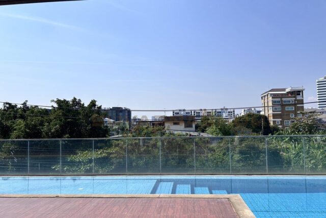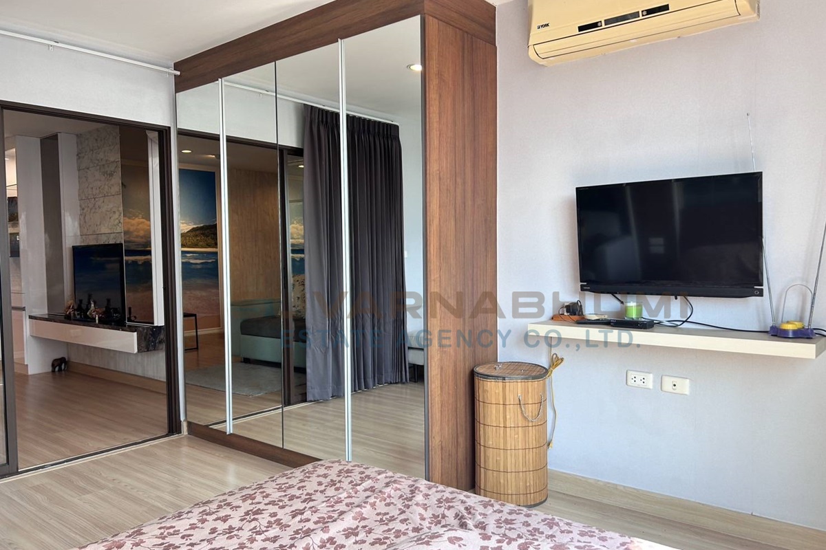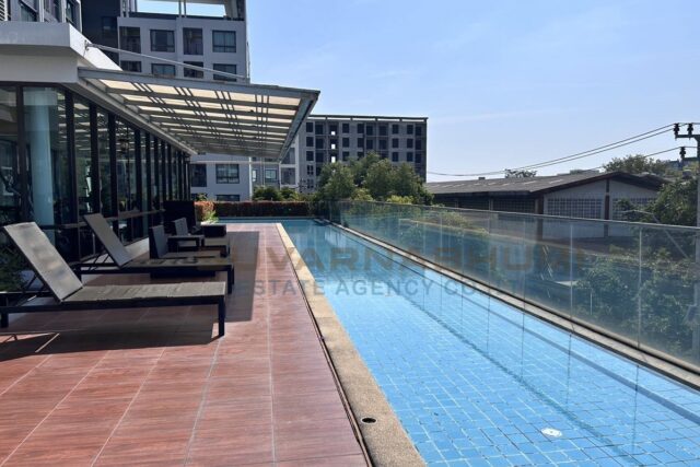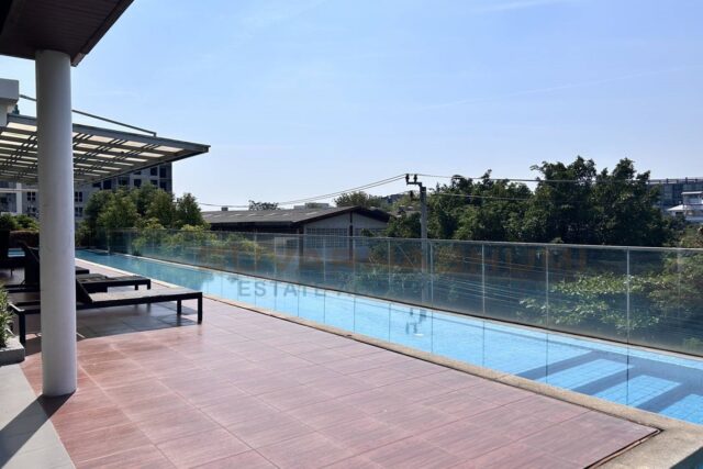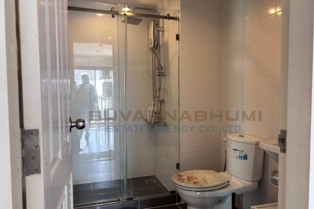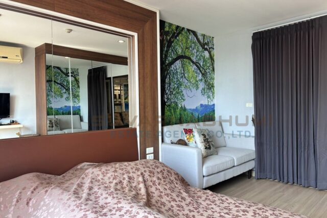 ขนาด 1 ห้องนอน 1 ห้องน้ำ ที่จอดรถ 1 คัน แอร์ 2 เครื่อง หน้าบ้านหันไปทิศใต้ ( ระเบียง )